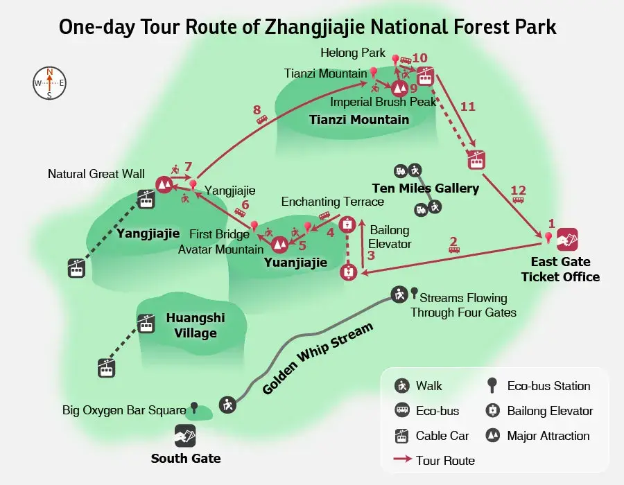 PERCORSO SUGGERITO da FARE nel PARCO FORESTALE NAZIONALE di ZHANGJIAJIE